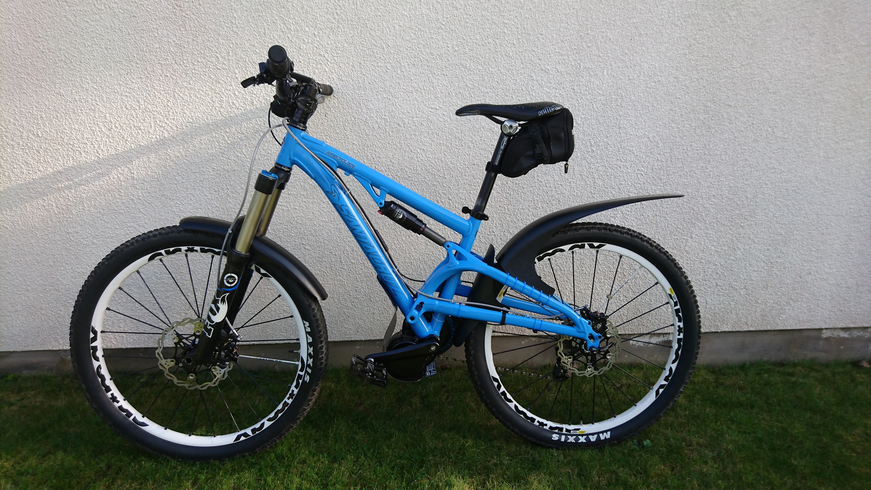 Another build as I've been missing my hardtail bike after selling the Cannondale SL1 Lefty...frame bought in the CRC sale for £160, the rest is from garage spares...Fox Factory 34 CTD forks, Mavic Crossmax WTS 275 Enduro wheels, Hope Tech3 E4 brakes (203/180), etc, etc...top speed on the flat is 39.1mph (according to Strava) running a 60V~ (full charge) battery with a 30ish mile range, but after getting used to FS bikes over the last few years it is a nightmare to keep in a straight line at speed on the trails...the colour combination has prompted a few favourable comments whilst out, although I'm a bit unsure about it myself.