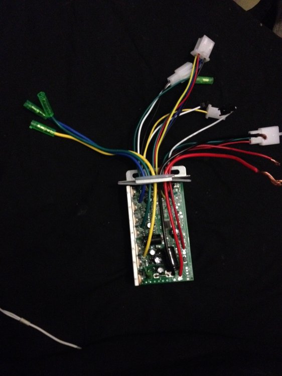 Oh really, not ideal but I do only weigh about 56 kg and the bike is really light and I could reach 20 quite quickly. Anyway picked up a controller early morning cheap from bath. No joy, no instruction but the guy gave me a link where he says he bought. https://www.amazon.co.uk/gp/product/B01I6C6HKK/ref=oh_aui_detailpage_o00_s00?ie=UTF8&psc=1 Thick black which is negative I'm certain. Now Thick red positive: Problem, If I connect this to the battery I get a spark fly. Does that mean it’s also connected to negative? If I connect thin red to battery positive it seems to work. I get about 5v coming out of the 3 throttle wire. I get about 12v from the small hall wires which my motor does not have. I get full power coming out of the thick red…? I can not get the motor running. I have the throttle connect and the thick three hall wires connected to the motor nothing. Is there something I'm missing here. Is there a way to bypass the throttle to rule that out. Do I need to do anything with thick red? Opened it and took a pic but don’t know what I’m looking at.
