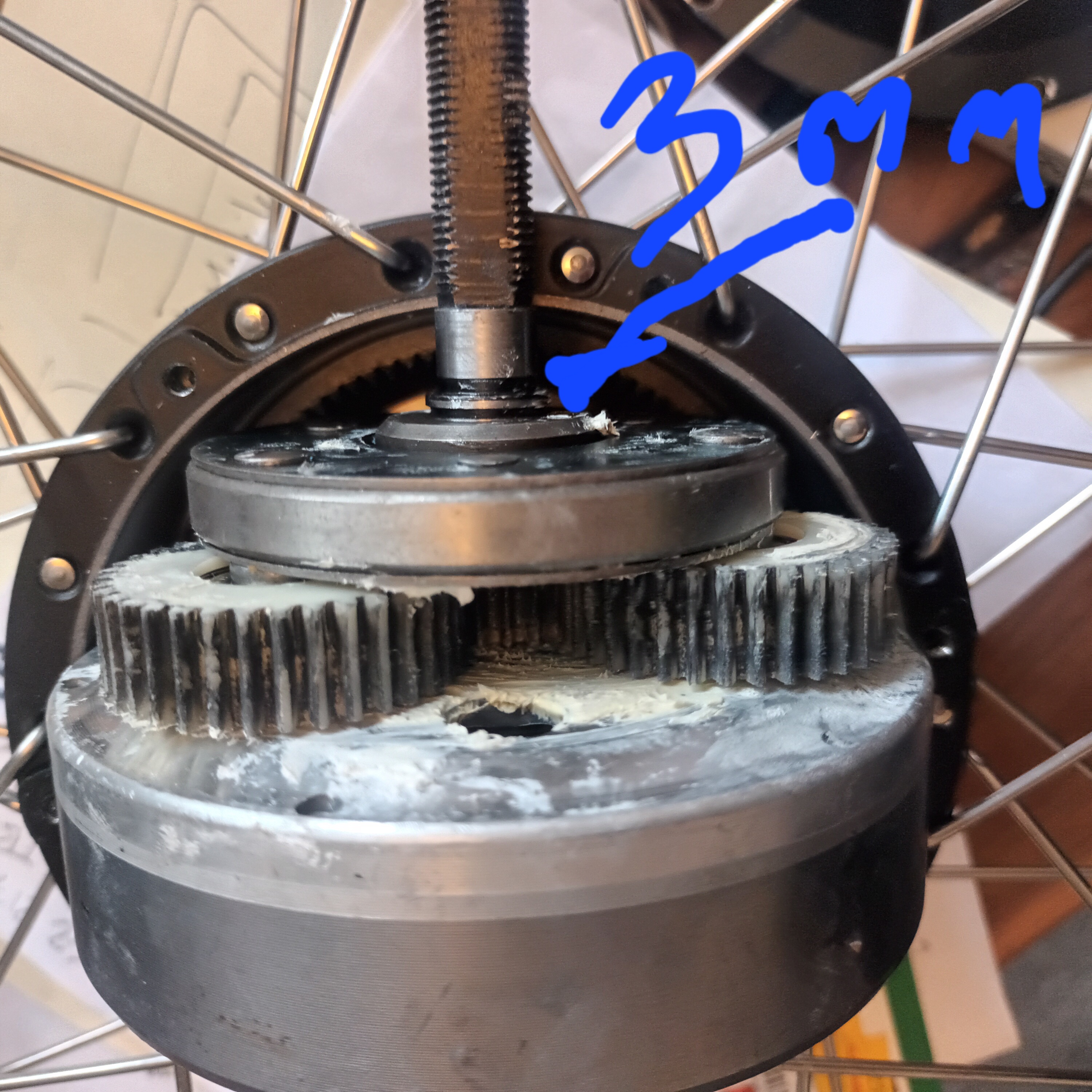 Hi pedelecs, Anyone with experience of hub motor noise? It sounds like a consistent but relatively quiet rattle. I've removed the motor out and the gear cogs could be more flush. There is a 2-3mm gap near the circlip which allows the gearing to give across the axle a little. See image attached. I'm wondering if that could be doing it? Will a thicker circlip do the trick? Your thoughts appreciated, as always. Best wishes