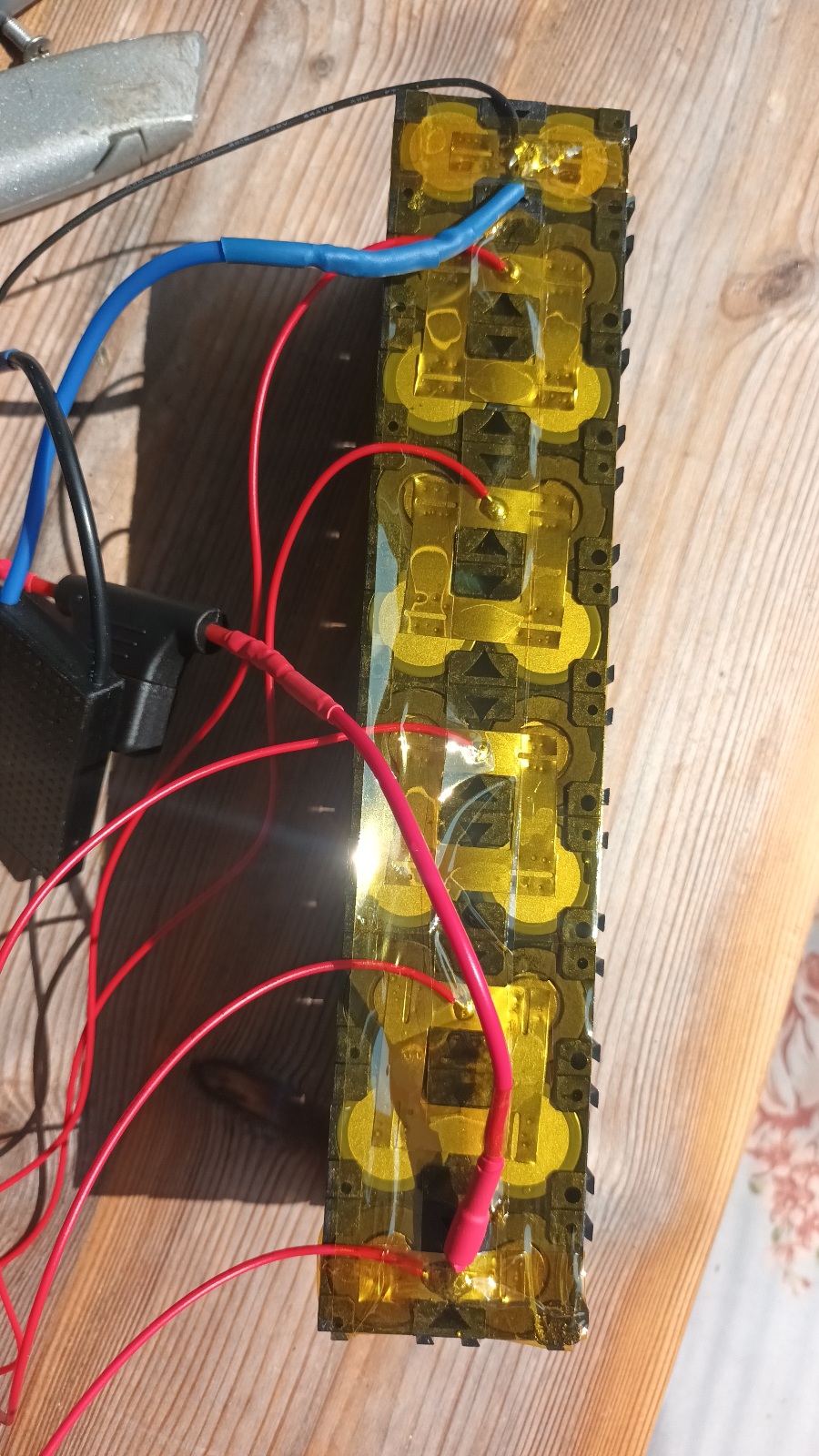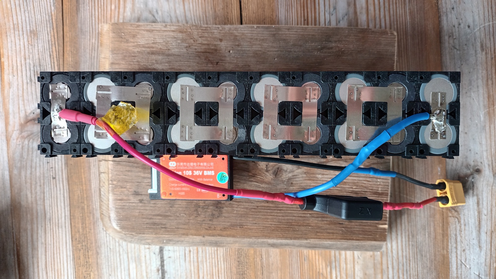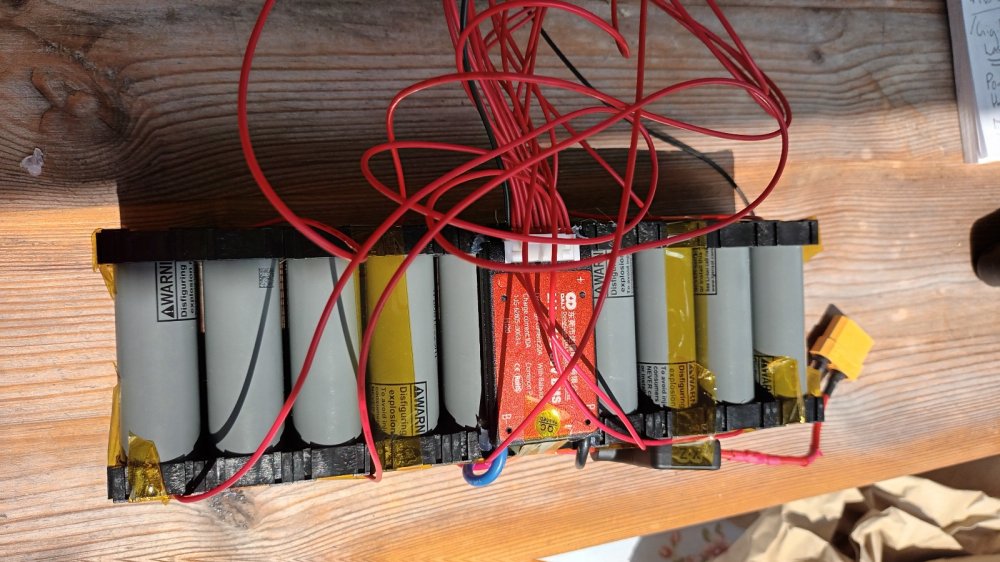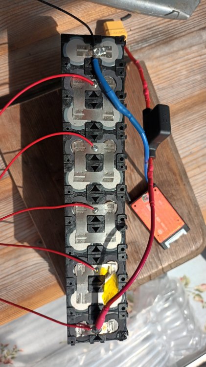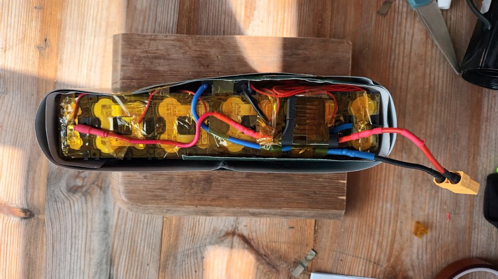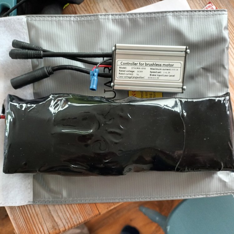 Hi, I have completed a 10 Ah battery and, as well as my own learning, would appreciate thoughts and improvement suggestions relating to safety, performance and electrical maths. Key points: 10S2P using branded 5mAh cells Daly 20A BMS Waterproof Common Port 30A Internal Fuse 0.15mm nickel strips 17A 200W Cables XT90 connector 7A KT controller BMS wiring *will need to lengthen wiring to house fuse outside heatshrink battery wrap Spot welds of 0.15mm nickel using SEQURE SQ-SW2 welder *ok but could upgrade welder* BMS soldering Covered all points with heat resistant tape Hot glued BMS. *Far too much length on BMS wiring. Thinking will cut to size? Surrounded with battery insulation paper Wrapped in heatshrink and will house in LIPO bag. * Thinking upgrade to 14A controller with XT connectors Thank you for your time