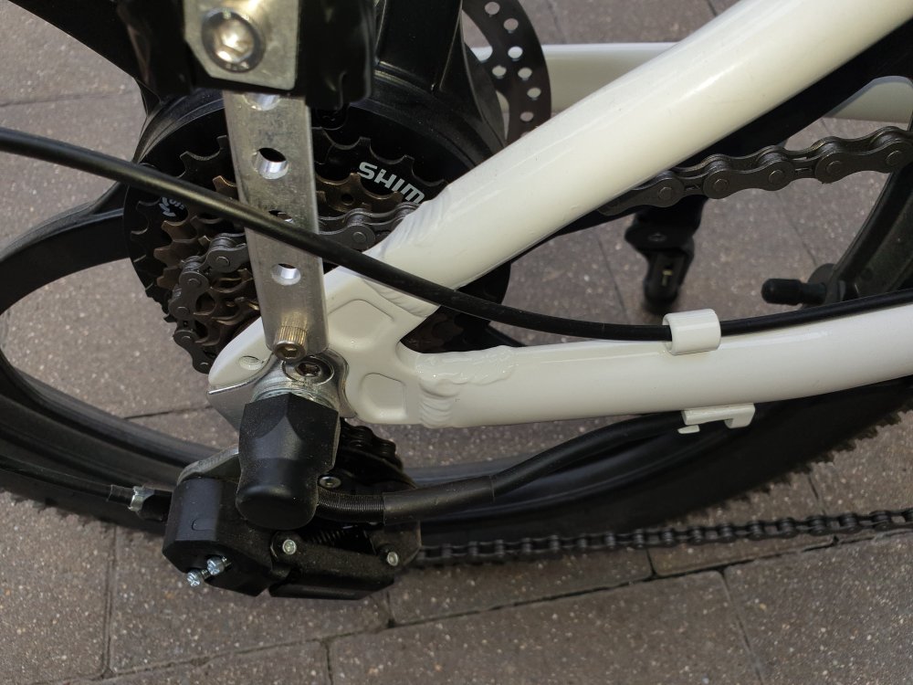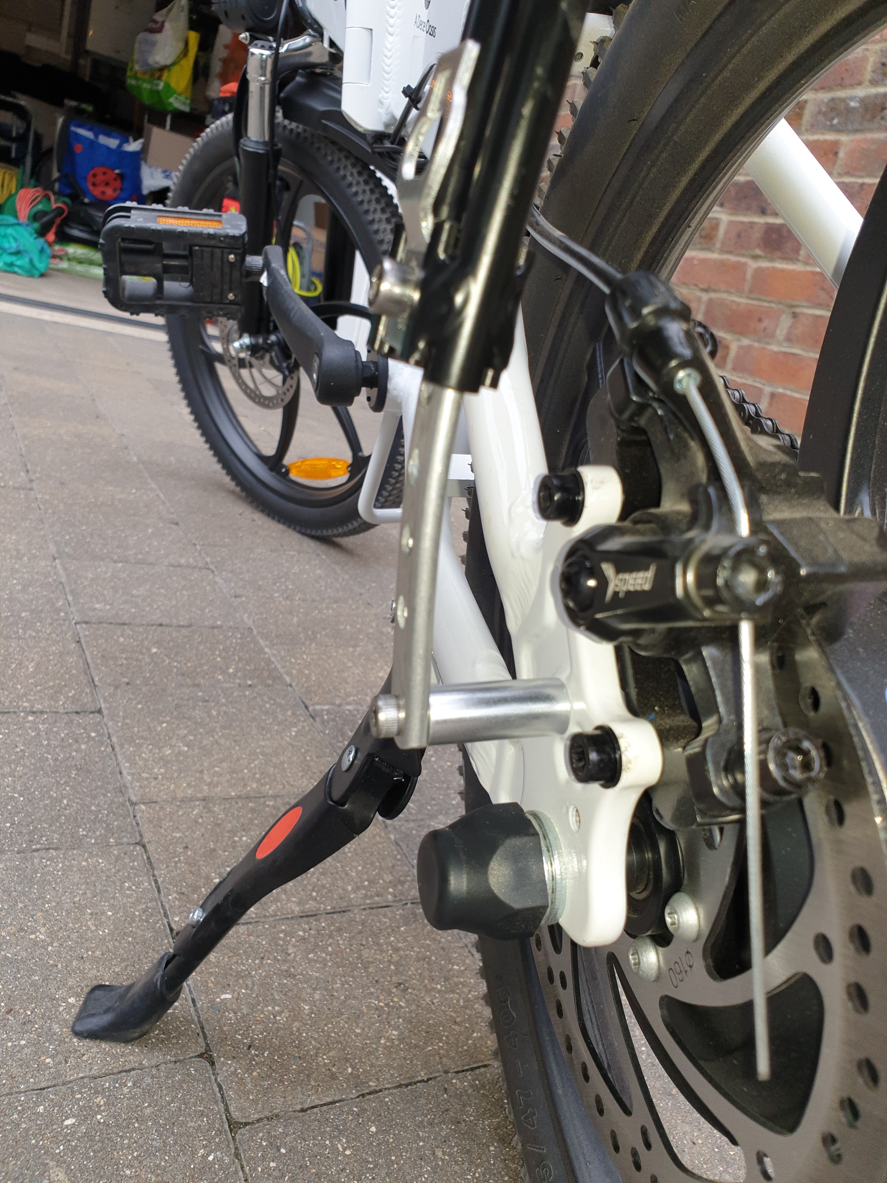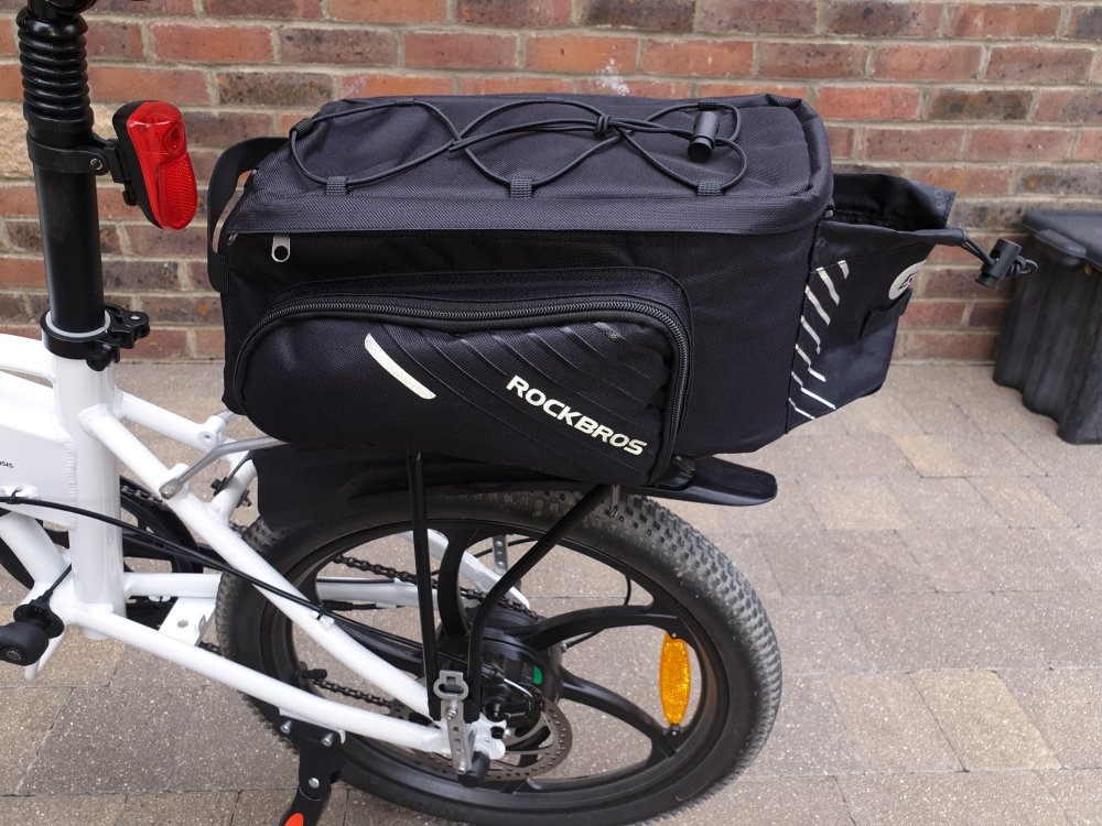 2. I didn't like the Ado offering for rear cycle rack as it fastened via trashy p-clips to frame rather than proper accessory mounting bolts so looked for an alternate. It looks like the same rack top as the Ado but comes with proper adjustable mounts and , half the price. I found this 20 inch folding rear aluminum rack on UK eBay but you can also order from China (£24.00). It is small but fits just right to side accessory mounting bolt holes and is just the right size for my new RockBros removable cycle bag, to store lock and pick up groceries. Its light but appears pretty strong. I used a PDW Disk brake spacer kit to "space" away from the gears. A very easy upgrade, took me 1/2 hour. Just need to reposition the brake light to the back of the rack or get another to fit there.