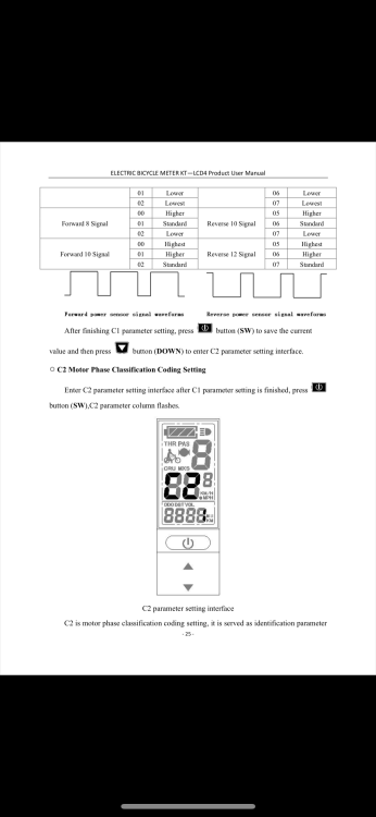 2. Hi I have been unable to get my new KT controller to operate other than to provide power assist at walking pace mode. I am sure that I have overlooked one of the parameter settings. Here’s the kit 1x kt36 brushless controller 1x ktlcd display 1x 12 magnet PAS sensor (this works on my other lishuj controller) 1x front wheel motor frame my Yoshi e-bike conversion kit See photos attached. I am unable to get any PAS other than walking mode (by holding down arrow on display unit) I have attached photos of part of the controller manual as I was not sure what setting to choose. I have made an assumption that the PAS sensor would work with a KT controller. It does work perfectly with my lishui controller (on the same bicycle). . I wanted to swap the controller so that I could use the lovely ktlcd4 display rather than the large C500 display that came with the lishui conversion kit. I hope someone can advise on the settings. thank you!