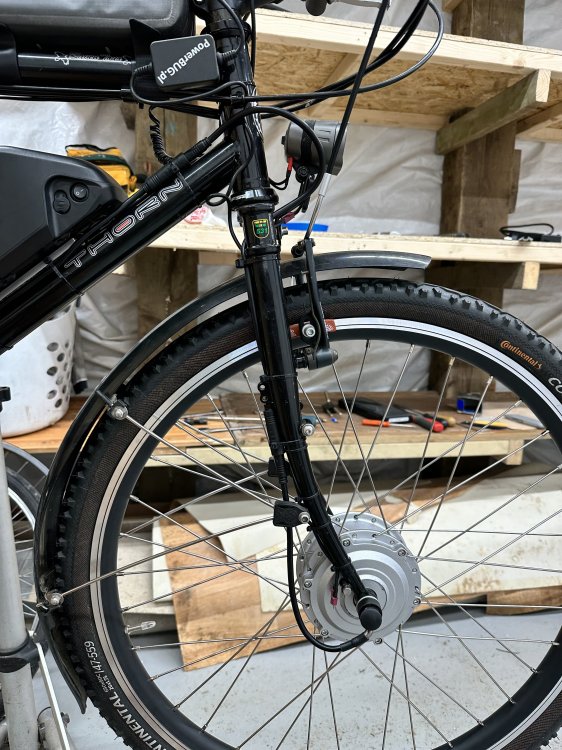 Was up early this morning so went out to the garage to finish up. Installed the wiring as neatly as I could, though it might be changed later, will see if there’s anything that rubs or pulls after a couple of rides. then took it for a quick test ride. Wheeeeeeeeeeeeeeeeeeeeeeeeeeeeeeeee! Everything works very well, I think it’s going to be a real boon on the local hills and encourage me to get out more now that I know I won’t be left pushing the bike up hills when my legs won’t carry me any further. I’ll be able to start working on my fitness again and also reduce the number of car journeys by doing grocery runs to the local town by bike. Will update after a few rides with how it’s all going.
