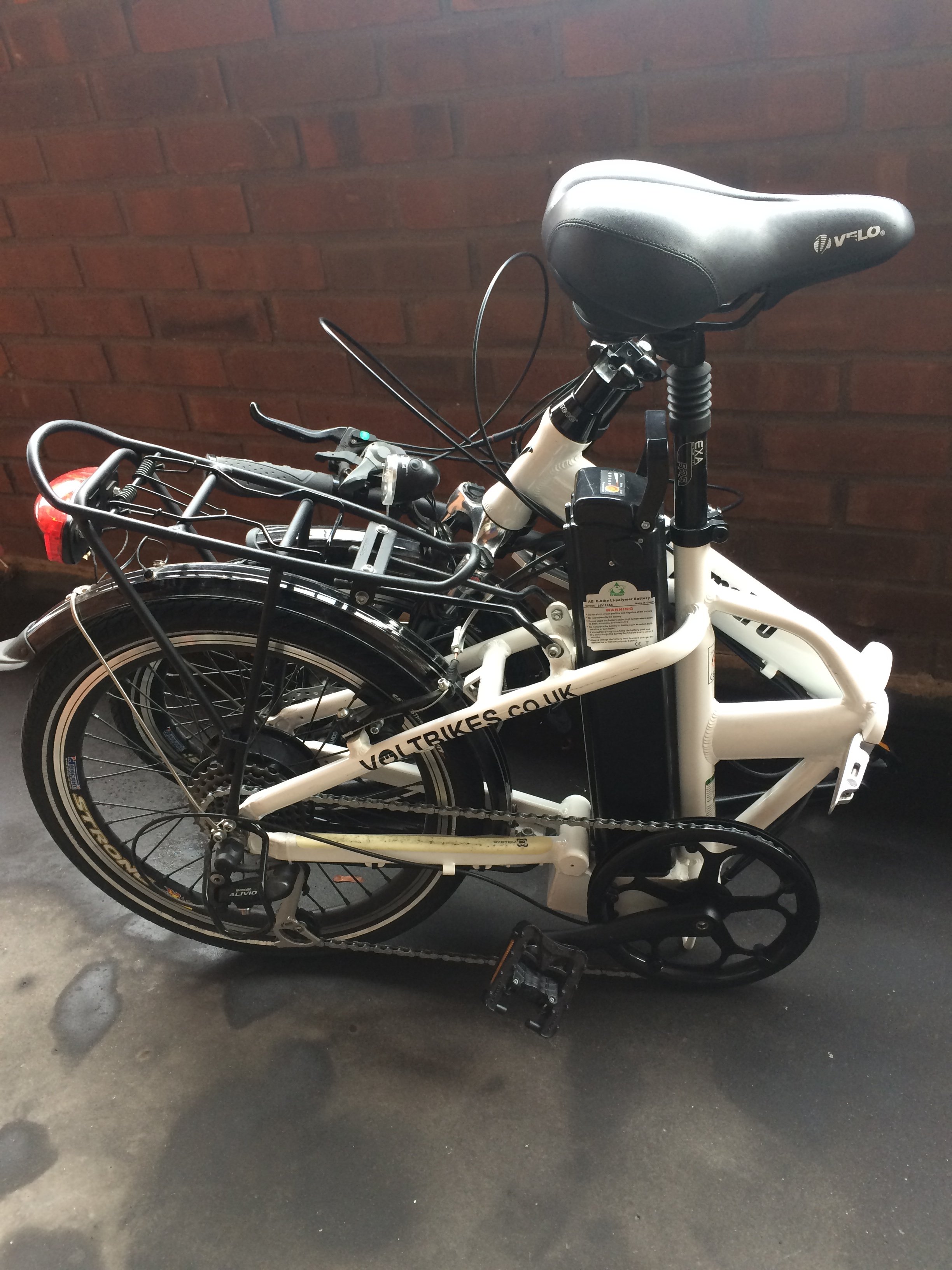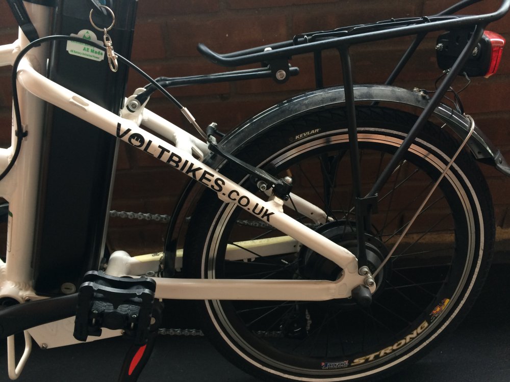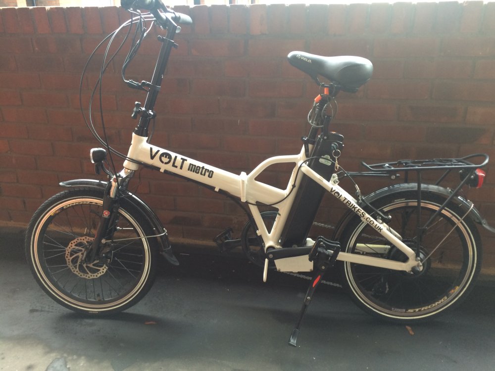 FOR SALE: Volt Metro folding electric bike, white, unisex style and great fun to ride. Sadly because of osteoarthritis in both hips I can't get on and off it easily any more. It's hardly used (less than 200 miles) and always been kept indoors. I need to replace it now with a low step-through bike. You can see all the details on the Voltbikes.co.uk website here: http://www.voltbikes.co.uk/metro-folding-electric-bike.php Some features quoted from the website: - A powerful rear hub Bafang 250 watt motor - sophisticated V-Wave Technology which personalises the rider's own cycling patterns. This ensures optimum riding efficiency - 5 level pedal assistance or throttle or fully manual ride - lithium battery - shimano gears - Kevlar lined puncture resistant tyres - front fork and seat-post suspension - Velo Plush saddle, -disc and v-brakes - Frame Size: 17 Inches - Wheel Size: 20 Inches x 1.75 Please ask if you have any questions. Welcome to have a rest ride... Collection from London. I'd like £750 (paid £1249) but open to reasonable offers. Thanks for looking, Marian