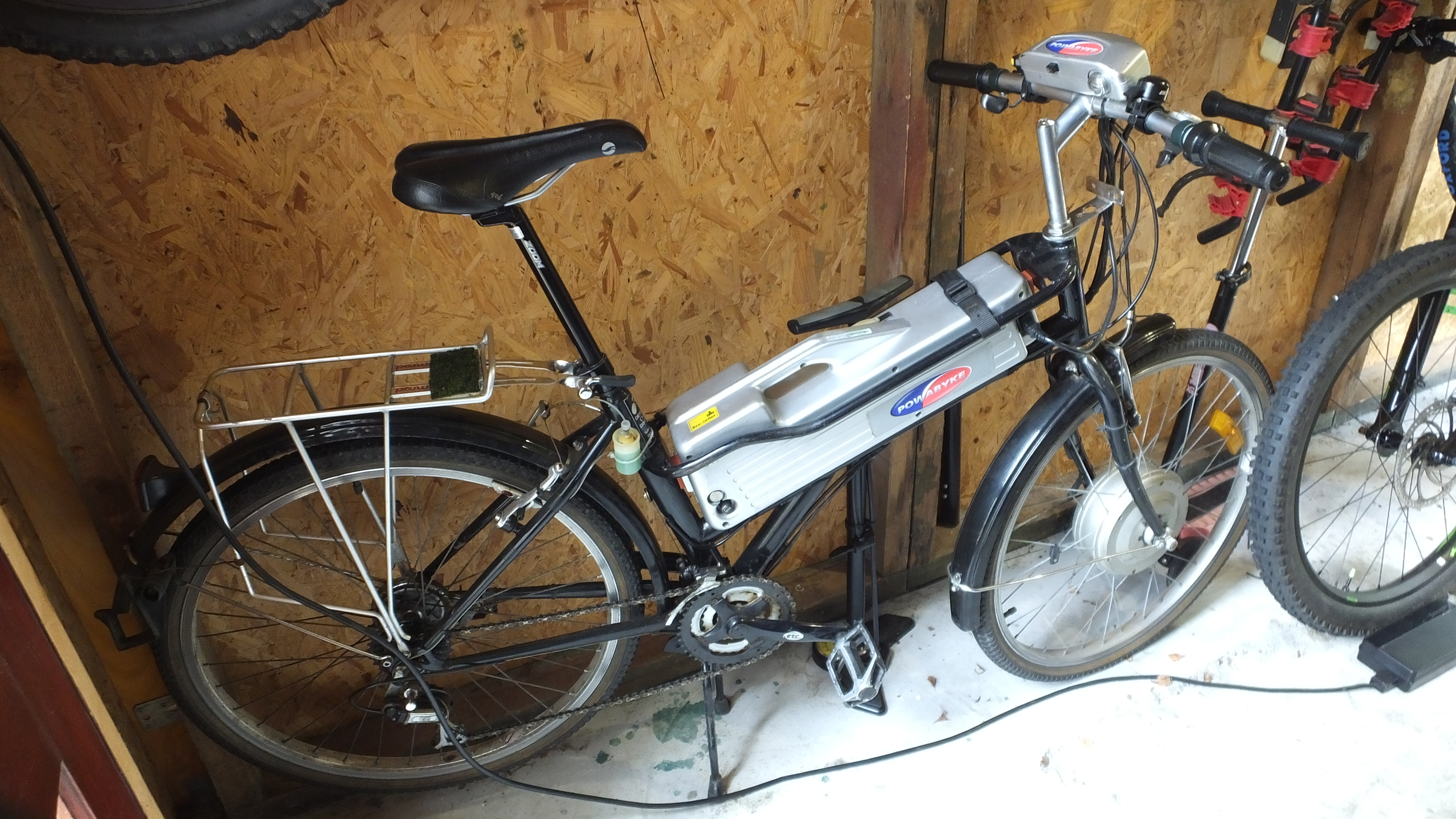 February 10, 201214 yr I am looking for an owners manual for my ancient Powabyke . I bought it second hand , and I do not know the model name . It has rigid forks , lead acid batteries , and a front hub motor , and five speed deraileurs . It does not have a low step through frame , the batteries fit between the two slim top tubes of the frame .Could the model be a Euro ? Can I download a manual any where , or does anyone have a surplus one please ? Another question . On the side of the battery box at the rear on the right is a large screw head of the type you would unscrew with a coin . This is not the fuse holder as that is a seperate item . Inside the box , behind the screw is a black pastic component with 2 or 3 wires to it , I forget which . Anyone know what this screw/component is , please ?