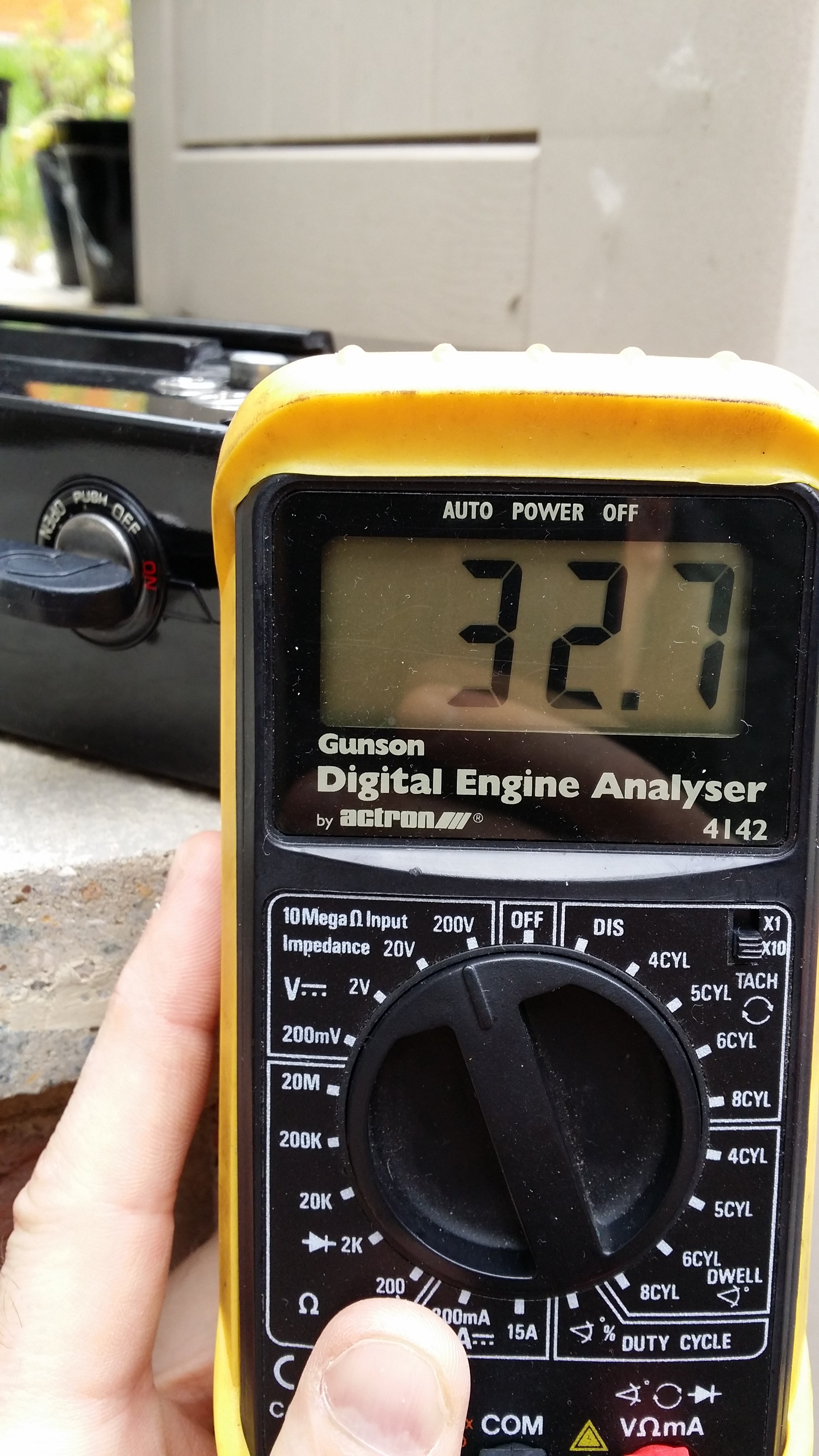 June 27, 201510 yr Author Thanks guys. Firstly, yes i have always charged the battery while switched off which i presumed was correct, including while doing these checks. Secondly, even after last night's 4 hours charge, just now there was only 1 LED lit and after riding for 5 seconds it completely died so last night's charge actually didn't do anything. Third, see picture for proof of me testing the battery while on. Again it shows 32.7. I then used the probes to check the charging socket with the battery on and it shows 0v. For completeness i then checked the charger while switched on and it read 41.5v. Just to clarify something as well, there has been a couple of times over the last couple of years that it may have been more than a few months without use but i always charged it before putting it away. Also I'm not sure if it was as long as 3 months in between uses. It was always stored in a dry shed on a shelf so wasn't at risk of damp or heat.