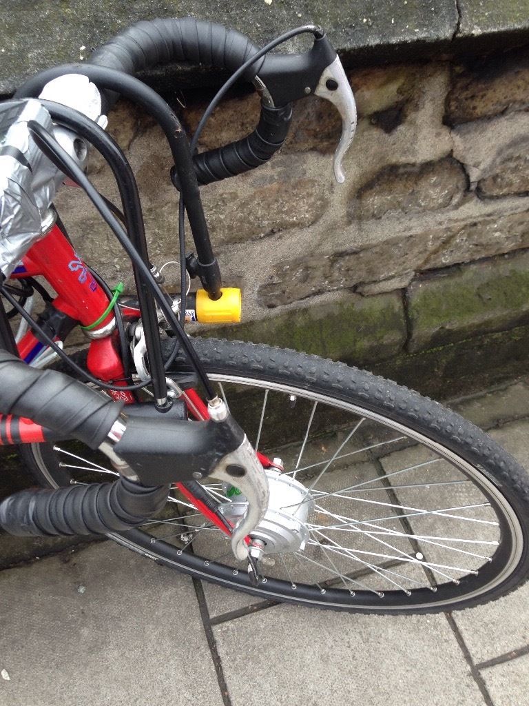 February 5, 20179 yr Hey I swapped the fork out for one with slightly longer reach this allowed me to fit my dual calliper. It now stops like a dream for me. I kinda like the vintage look and feel of the bike and a straight fork would look wierd. Saying that I have loads of inner tube and wires all over the place but im not sure how I can really sort that out as they gave me way too much wire. However as I have always found V brakes too strong as I have to press them super lightly when I ride my girlfriends sirrus to stop me flying over the bars. Feel like this is a good compromise and I probably wouldn't like disk brakes if they are even stronger than V brakes. Is there something different with V brakes and E bikes? Like is a V brake equivelant to a calipur brake because of all the extra weight or does it perform exactly the same? Glad you found a straightforward solution that works for you, brakes are quite a personal thing IME, I like a well set-up v-brake, find even dual pivot calipers a bit lacking in power and cantilevers rather fiddly and inconsistent on the whole, though I do run one on the back of my touring bike. Disc brakes are certainly very good in terms of stopping power and wet weather performance but have their own issues as well, particularly with drop bars where going to hydraulic disc brakes would mean either spending large sums on new forks plus hydraulic disc brakes specifically for drop bars (TRP Hylex are probably the most reasonable here but are still over £100 each), or swapping to straight bars and totally changing the nature and look of the bike. Cable disc brakes are available for use with drop bar brake levers but they have various design compromises, e.g. the cheapest ones such as Avid BB5s have one moving pad and one fixed, the moving pad pushes on the disc deflecting it against the other pad, and only one pad is adjustable which often means that you have to realign the caliper every time you adjust for pad wear- the cable adjuster is not very useful for adjusting for pad wear as using it will alter the actuator arm to a less efficient angle. Next up in price (about £80 for two brakes) are the brakes with two pad adjustment e.g. BB7s, with these pad wear adjustment is a lot easier, but they still have one moving pad and rely on flexing the disc against the fixed pad. Best of all cable designs are ones that have two moving pads, e.g. TRP Spyre, but these are about £60 each. For most people BB7s are probably the best compromise.