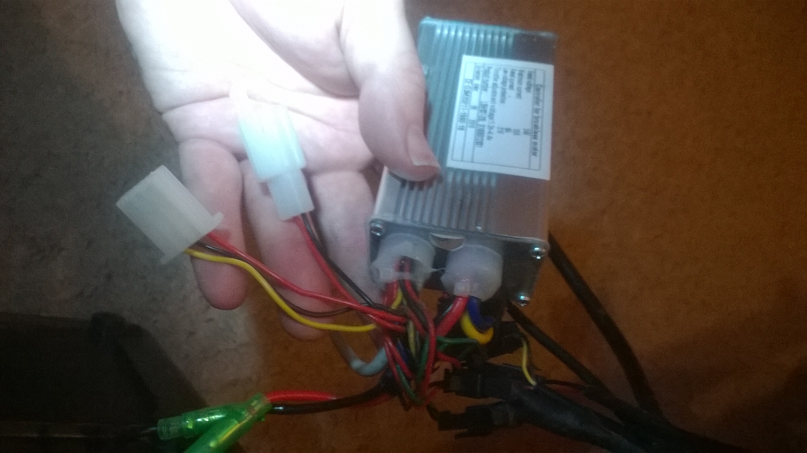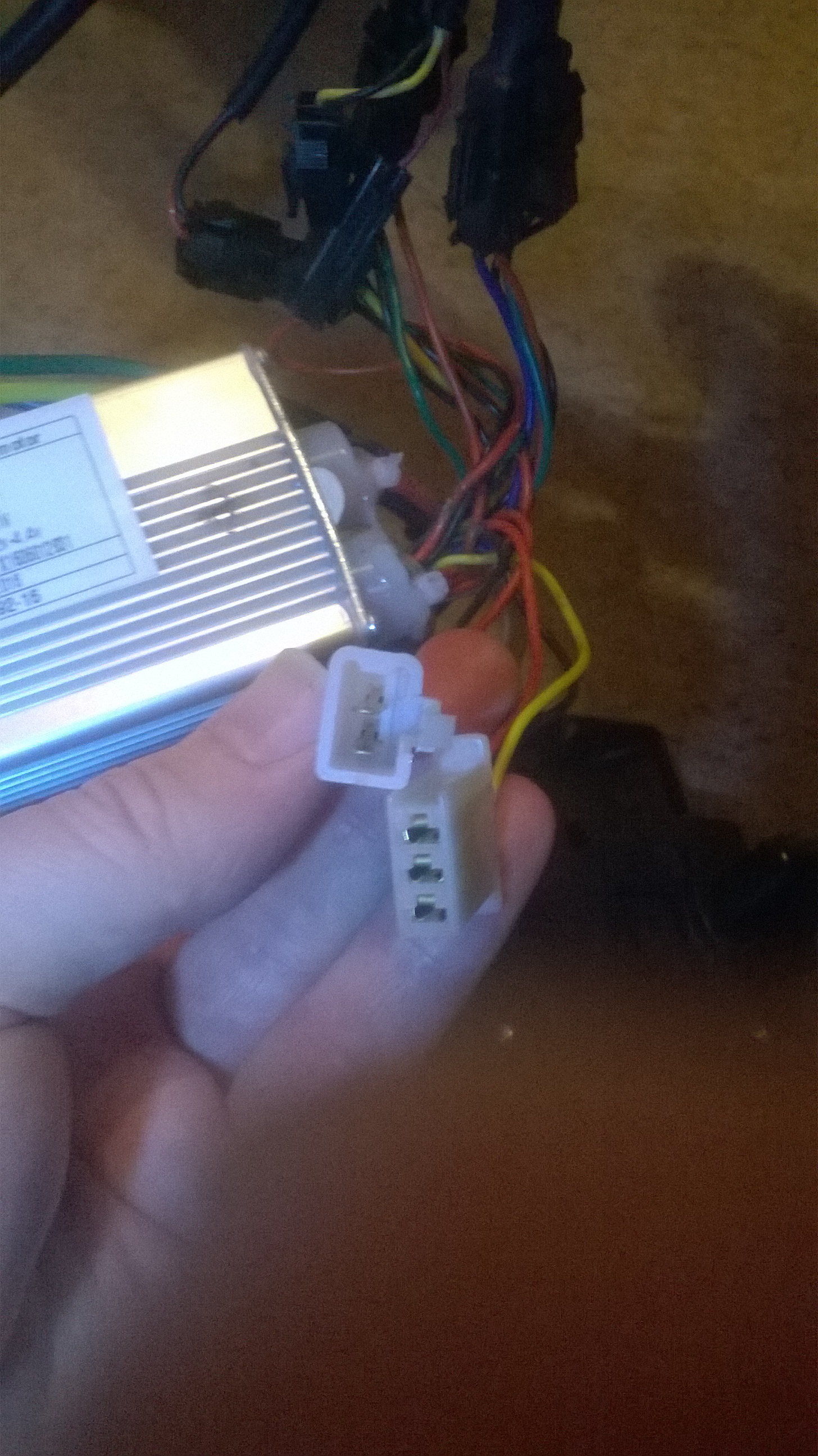 The controller sits in that little box at the front of the battery. You need to open it up and drag out the controller, then take a photo of all the connectors.