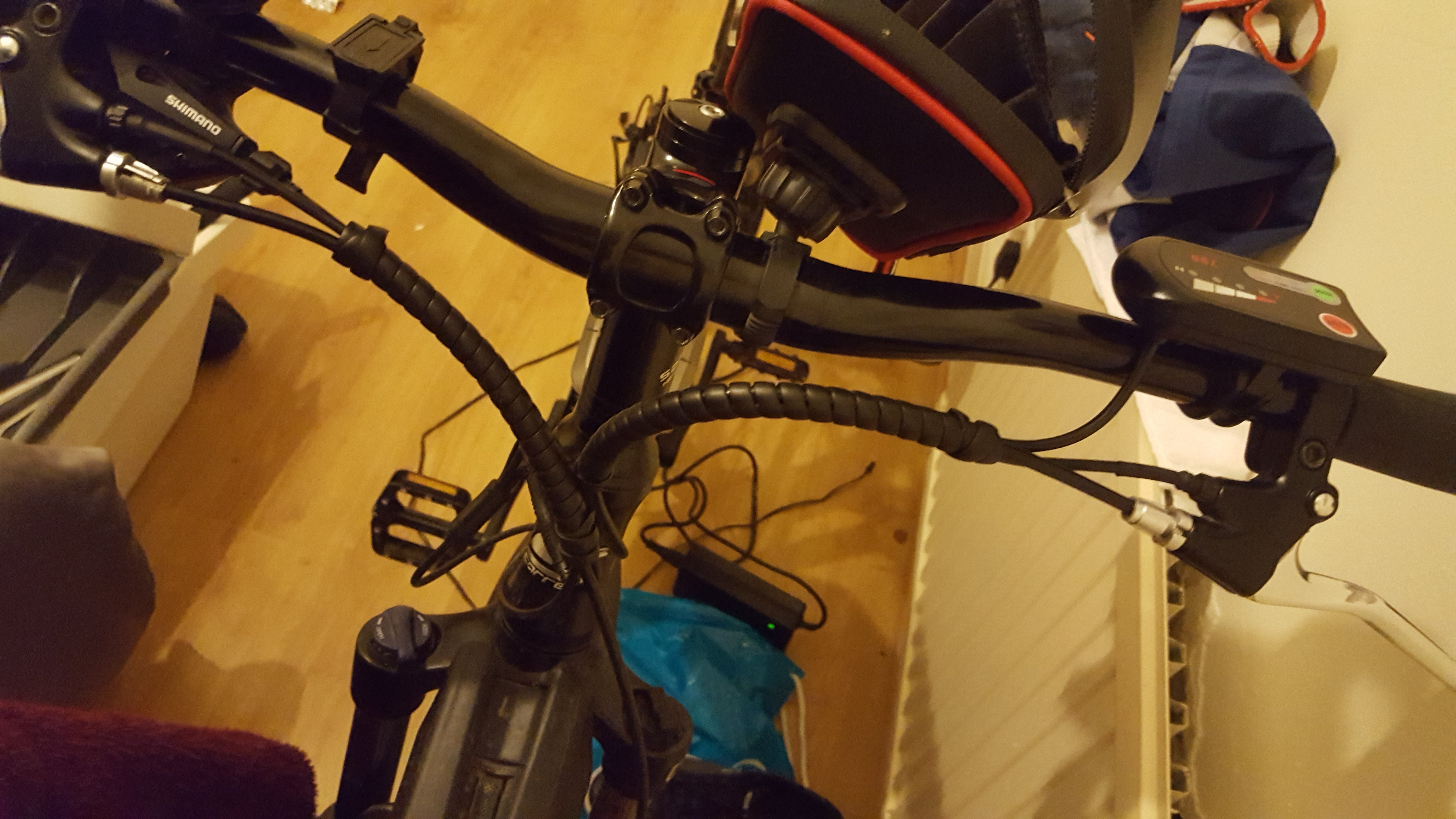 I was pleased to see that the bike already has a wire leading from the front brake leading to the controller, which is responsible for cutting out the motor when the brake is applied when the throttle is open.
