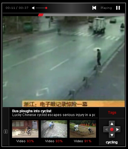 unbelievable:o if i hadnt seen the cyclist crawling out there is no way i would have thought he could survive that.
