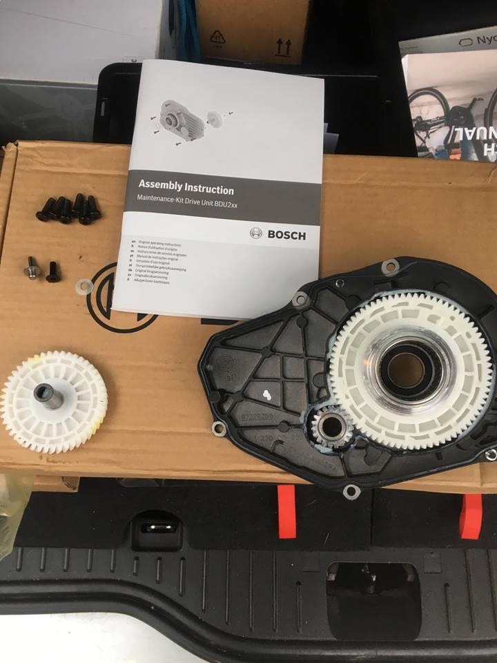 December 2, 20187 yr As you may already be aware, Bosch are just about to release a maintenance repair kit, which is designed to offer peace of mind to those owners that are buying an ebike that is out of the covered warranty period. Given that the kit comes with the following items shown below, including outer case and gears, it offers exceptionally good value at a retail price of £95.00. Whilst primarily designed to be installed by a Bosch approved dealer, with correct tools, and due care and attention, I can't imagine it being outside the scope of a competent person to carry out the process at home. As well as looking easy to install, the kit also comes with a two year warranty. I wonder if anyone else advertising bearing replacement, could offer that kind of cover. What seemingly never gets mentioned when people talk about replacing bearings within the Bosch drive unit, is that there is high probability of damaging the torque sensor when changing the left hand side (non drive side) bearing, which can lead to the ebike ghosting. I have replaced right hand (drive side) outer bearings my self for other people seeking help, and as far as I'm concerned this kit offers everything that you will need, without risk of causing damage to sensitive parts of the drive unit. I was made aware of 'ghosting' a while back, by someone that had recently had a drive unit rebuilt by a non Bosch approved company, and wouldn't personally risk touching or dismantling anything beyond what is sold within this kit, and it is with good reason that no Bosch technician is permitted to so either. The torque sensor is tested and calibrated in what Bosch call an “end of line test” at the production facility. If you remove it, it’s not possible to check the calibration after refitting it....even if the paint is aligned across the nut and torque sensor shaft. I shall update this thread over the next few weeks with defined photographs when I get the chance of being able to review the kit my self, but I certainly think that with what is being offered, it represent superb and hassle free value for money. Markings as mentioned above. Edited December 2, 20187 yr by EddiePJ
