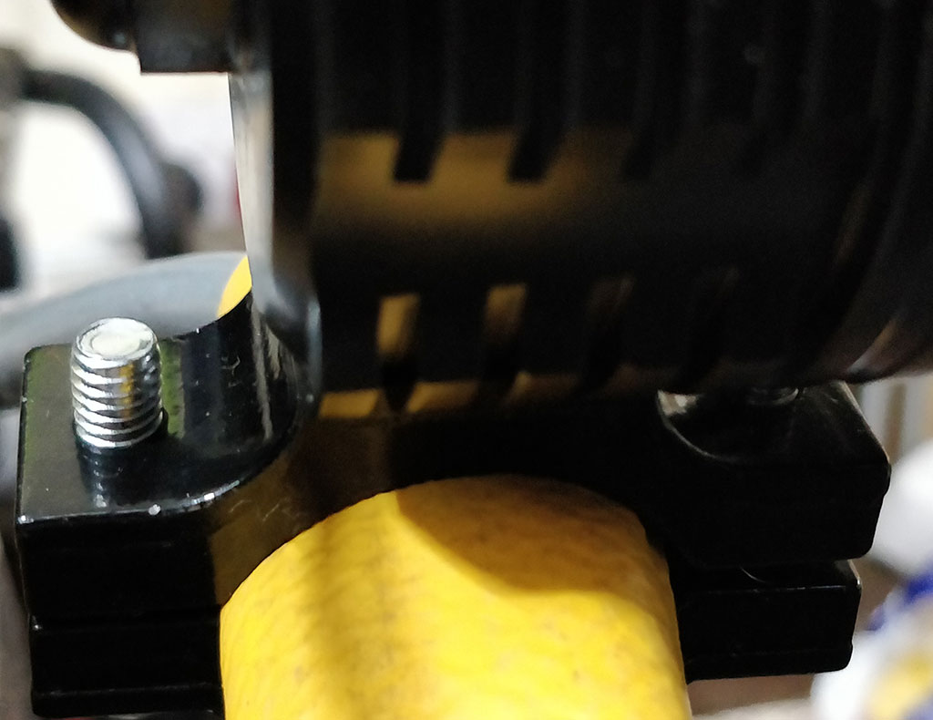 October 30, 20223 yr Author All three 1800LM headlights are installed on my bike. The rear 1800LM is fearsomely bright, even with two layers of heat-resistant red acetate behind the glass. And of course, I now have twice the brightness on the handlebars: 3200LM. Still waiting for the dual switch - wires are in the right place for when it arrives next week, and for whenever I next have time to splice that second (dual) switch in... The second switch will enable different mode per light. For now all three are either bright, dimmer or flashing scarily, with modes changed via a single handlebar switch. I'll take some photos when I'm next out in the dark... Both of the front lights flash in sync. When the other switches arrive, that'll be optional - out of sync flashing may make for easier viewing while riding. Rapid variance of brightness might make video capture of number plates at night clearer, as numberplates weree overblown at the lowest exposure settings of my action camera, when using one bright steady light. Here's a brightness comparison of the now red 1800LM with my Bafang 6v 5w rear light, which switches on automatically when the DPC-18 display detects low light conditions. It's on, but doesn't look it, and this photo has an exposure time of 1/54,191th second. ISO is 320. The red light is confusing the Luxmeter app on my phone, the only reading I can get is 32,767 max lux, regardless how far away I hold the phone camera. Too fast for human eyes, LED lights do flash very rapidly. Probably a measure of the peaks of bursts. Might explain why the flashing mode is so disconcerting to view. A bright sunny day measures a steady 8,000 - 10,000 Lux. I've bulked up the end of the rear rack, using some old hi-viz cut hosepipe, so that the light can be angled down for a smaller folded size, and for those rare occasions when I'm feeling generous towards drivers. The clamps are pretty sturdy, but if anyone does buy these lights, bear in mind that the threads are not clean - pooled paint inside the holes, I think. I found it best to clear the way by first driving the hex bolts through the opposite side of the holes, otherwise you risk fouling the threads. But if you do ruin a clamp thread fear not, because there is room for slightly filed down locknuts on top (bolt to the right), to hold the clamp firm. I've pointed a 5W 6V light backwards, to illuminate my hi-viz blouson at night - that lit one is connected to the output for low power lights on the controller, for now. And that's my 120db Hornitt in the middle. Cheap - and it'll be circa £77 well spent, if these lights prevent my being squashed by a driver. 3X 1800LM headlights 45 5m 11A 0.5mm 2 core automotive wire 5 Red heat resistant acetate sheet 2 2 X waterproof handlebar switches: 1 single, 1 dual 25 77 Plus a bit of solder and blade fuse I already had. If you don't have a suitable ebike battery, a separate small bottle battery could be used. There's a 0.2V drop in voltage when all three lights are on full constant, 0.1v when all are dimmed, and switching between both voltage reductions when three are flashing. Hope these keep the fuckers away... Edited October 30, 20223 yr by guerney