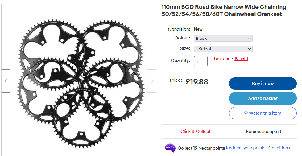 February 17, 20233 yr 60 tooth chainwheel huh? I currently have an 8 speed cassette with a 38 tooth chainwheel (26 inch MTB) but I find I'm running out of gears at top speed. I have a 42 tooth in my shed waiting to be fitted when the weather gets better. 42 tooth was the largest chainwheel on the triple crankset I removed. How did you find the 60 tooth? Was it OK for pulling away from a standing start (no throttle)? I guess a longer chain is required, how many links did you use? Apologies for the thread hijack. It was a big conversion, first fitting a spider in place of the existing fixed chainwheel, then adding the 60 tooth ring bought from French company Zenith. No room for a 8 sprocket so I used a 6 sprocket Shimano Megarange freewheel giving me five sprockets from 13 to 24 tooth plus the 34 tooth megarange granny gear to get me home in the event of motor breakdown. So 262% range and no problems pulling away, I can't give links removed since with drastic change at both ends, I started from scratch with completely new chain. End result was that I could pedal up to 28 mph and also climb 25% with the bike's rear hub Bafang motor. I even once climbed a 30%, but that was brutal and I never tried again!! Side view of 60 tooth and derailleur in top gear: http://www.flecc.uk/t/images/rearend.jpg And contours in my hilly area: http://www.flecc.uk/t/images/climbs.jpg http://www.flecc.uk/t/images/hesiers.jpg