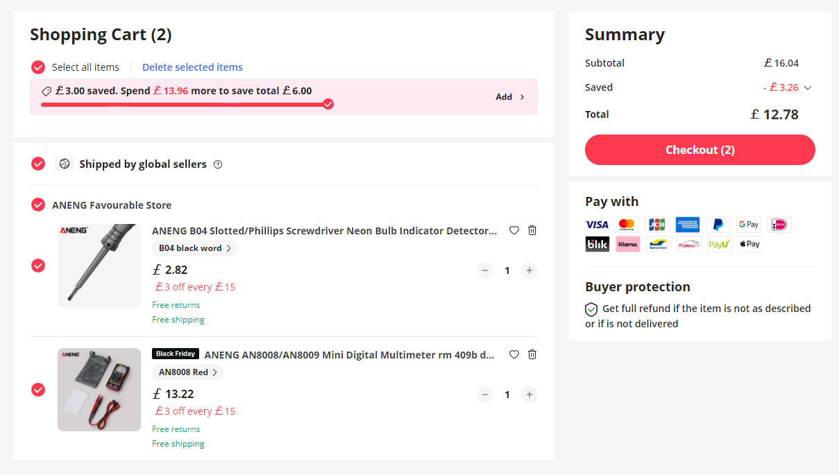 November 26, 20232 yr The BF aliexpress deal with also £3 off for every £15 spent is another nice added bonus. I bought an item that was on offer at £75 and usually retails from £128 - £175 , with that £3 offer I got another £12 off the £75 offer. It isn't often I bother with BF but the item I bought I have had my eye on for a few months.