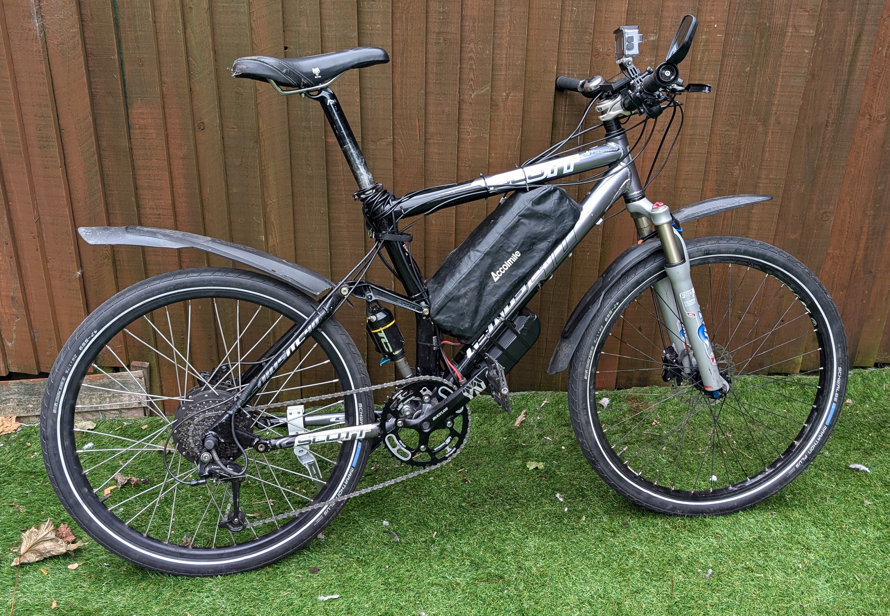 September 29, 20241 yr Can you post a pic of your Genius so I can get a handle on what you did. I've only really looked into mid-drives so far, and that is plainly not possible with my Genius. Plus, I've only EVER ridden a bike that drives from the rear wheel. How does front drive feel (well, 2WD really, when you're pedalling too). It is a rear hub conversion I stated with a £50 Facebook marketplace 15 year old Carrera Vulcan hardtail (26" wheels) with mechanical disc brakes and fitted the ubiquitous Bafang G020 rear hub ( winding code 12) with the standard 48v 18amp speed based controller. I upgraded to hydraulic brakes (£30 off Ali express) and the woosh bottom bracket torque sensor - which came with a controller with power based pas levels That all worked really well, but it was a bit heavy to get in and out of my shed, the coil front fork wasn't great on trails and on very steep hills (1000 ft climbs with gradient getting up to 27% with a combined weight of 130kg for me and the bike) the 6 MOSFET controller would overheat So that is where I got the Genius (again off Facebook marketplace) , fitted the Bafang rear wheel , with a 9 MOSFET KT 22anp controller (that I have "detuned" to 18 max amp). Seems brilliant on road and trails, possibly would have got the winding code 14 version if it was primarily for trails. Went to single front gear (48t) for leisurely pedalling cadence, again, possibly would have gone slightly smaller if using primarily for trails. 48v 20ah battery is a bit tight but can slide on and off (20" frame). The suspension seems fine so far, checked the shocks air pressure after a couple of months and it has kept the same air pressure - no leaks I thought would be able to do front, rear or mid motor conversion, isn't it a square taper bb ? The story is here https://www.pedelecs.co.uk/forum/threads/pedelec-nirvana.47347/ Edited September 29, 20241 yr by Peter.Bridge